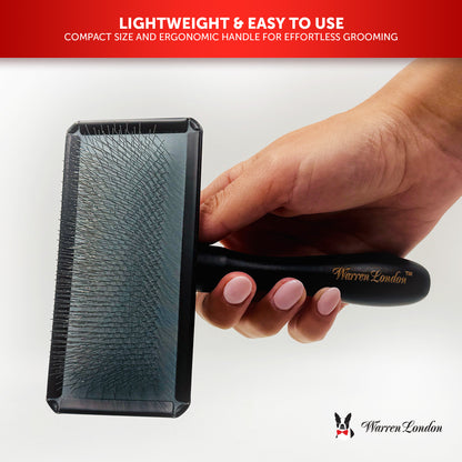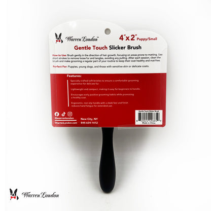 The Warren London Gentle Touch Slicker Brush is specially made for puppies and small dogs with sensitive skin. Its extra-soft pins gently remove tangles and loose hair without irritation, making grooming a stress-free experience. Compact and lightweight, it fits perfectly in your hand and offers great control. A perfect starter brush to introduce young pups to healthy grooming routines while keeping their coats neat and comfortable.