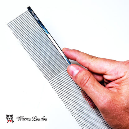 Warren London 7.5" Cool Copper Cat Comb, expertly crafted with rounded tips and a dual arrangement of coarse and dense teeth, ensuring gentle yet effective grooming for your feline companion's coat. Enhanced with copper features for added hygiene and durability.