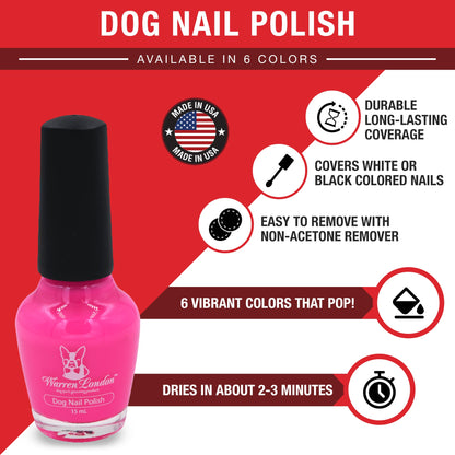 - Quick Dry & Easy Application - Shake well before using. Unscrew cap, and coat brush tip with polish before applying paint on dog's nail. Easy To Remove with Warren London Dog Nail Polish Remover or any non-acetone polish remover.
